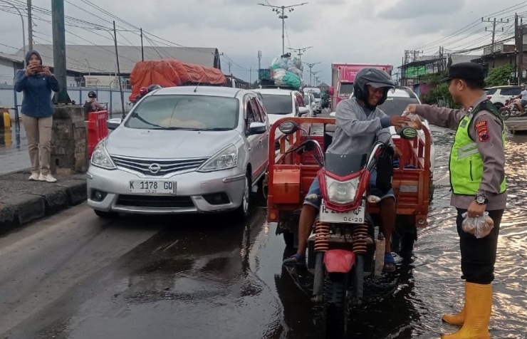 Pembagian takjil ini diinisiasi sebagai bentuk kepedulian terhadap pengendara yang terdampak kepadatan lalu lintas akibat genangan air rob.