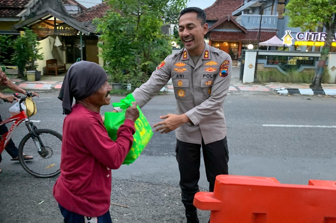 “Bansos yang kami berikan berupa paket sembako. Semoga dapat membantu memenuhi kebutuhan sehari-hari mereka,” jelas AKBP Ari.