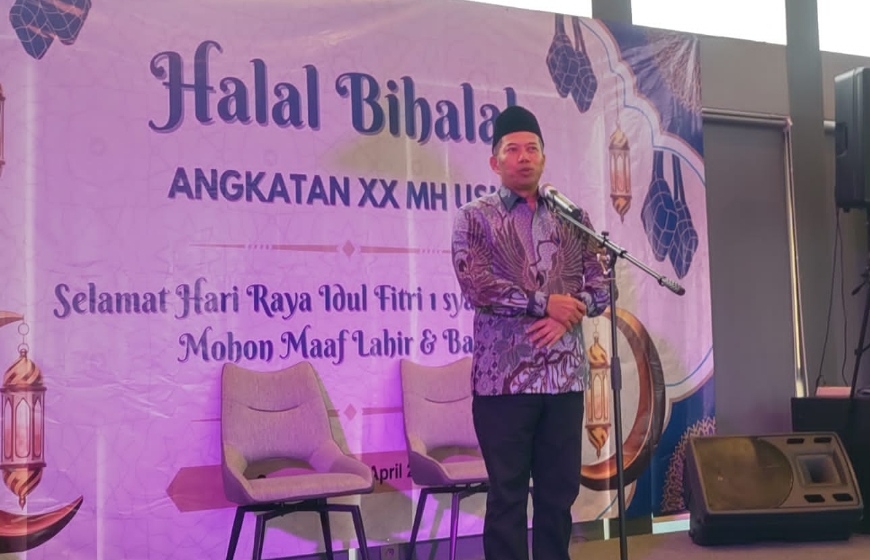 Rektor USM Dr Supari ST MT dalam sambutannya mengapresiasi acara Halalbihalal yang digelar mahasiswa Magister Hukum USM Angkatan XX.