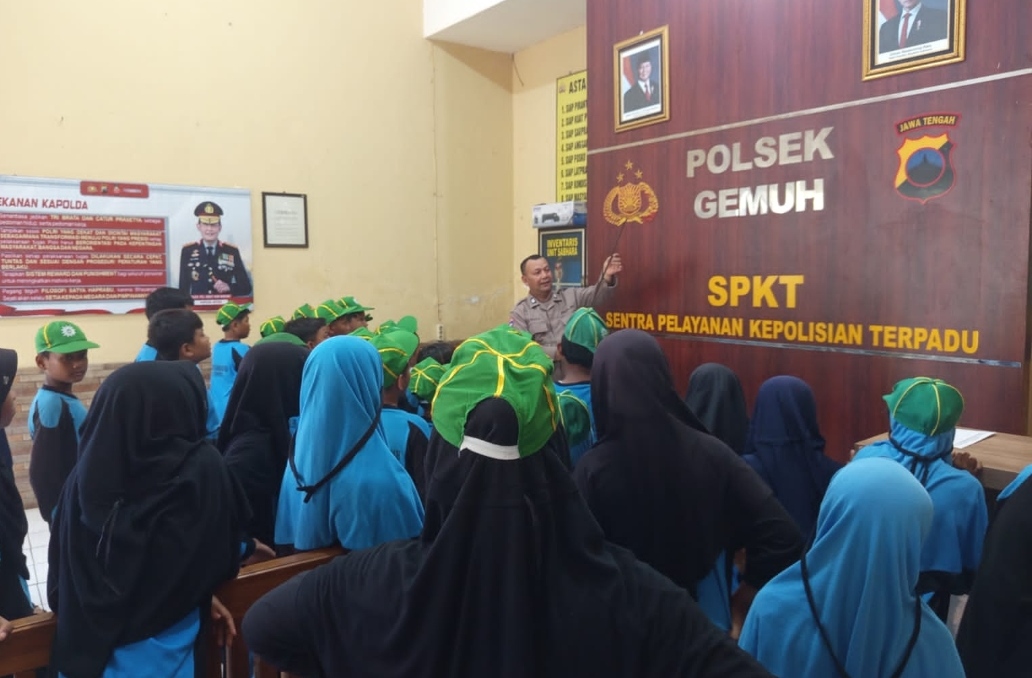Sekitar 40 anak didik yang didampingi empat guru pendamping disambut langsung oleh Kanit Binmas Polsek Gemuh, Aiptu Zudi Hanafi, bersama anggota Bhabinkamtibmas. Mereka menggelar sosialisasi ringan di halaman depan Mapolsek Gemuh, memperkenalkan fungsi-fungsi dasar kepolisian kepada para siswa.