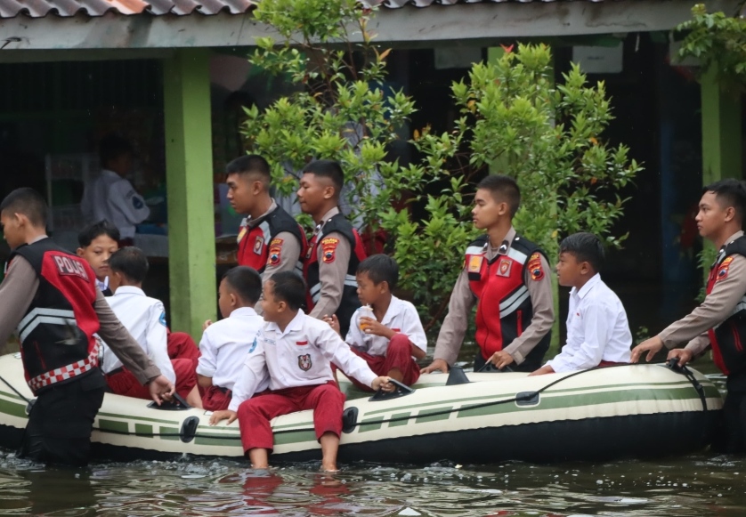 Menyikapi hal tersebut, Polres Demak menyediakan perahu untuk membantu siswa di Desa Sayung dan Lengkong karena terdampak banjir untuk diantar ke sekolah agar bisa mengikuti proses belajar.