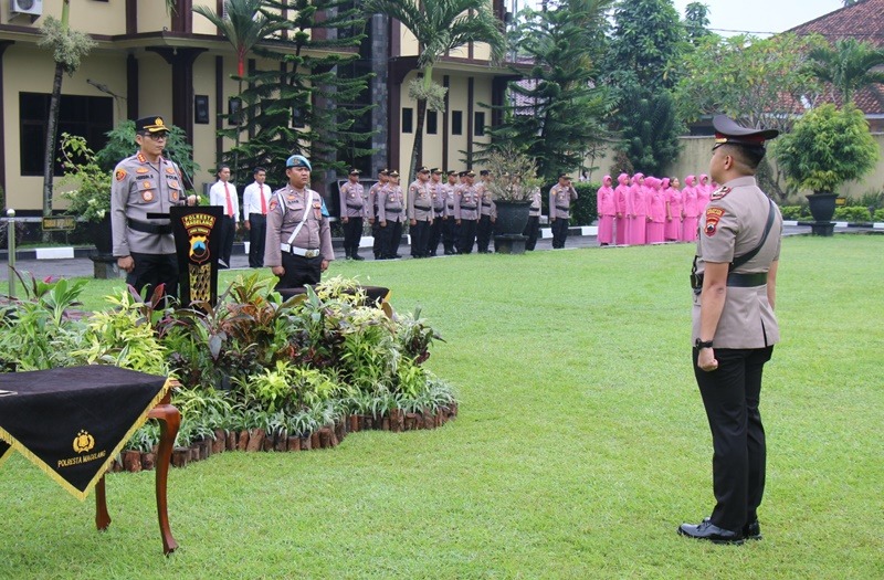 Upacara dipimpin langsung oleh Kapolresta Magelang, Kombes Pol Herbin Sianipar, S.I.K., S.H., selaku Inspektur Upacara. Perwira upacara dijabat Kabag SDM Kompol Andy Wasono, S.Psi., M.Psi., Psikolog, dan Komandan Apel oleh Kapolsek Salam AKP Darwan.