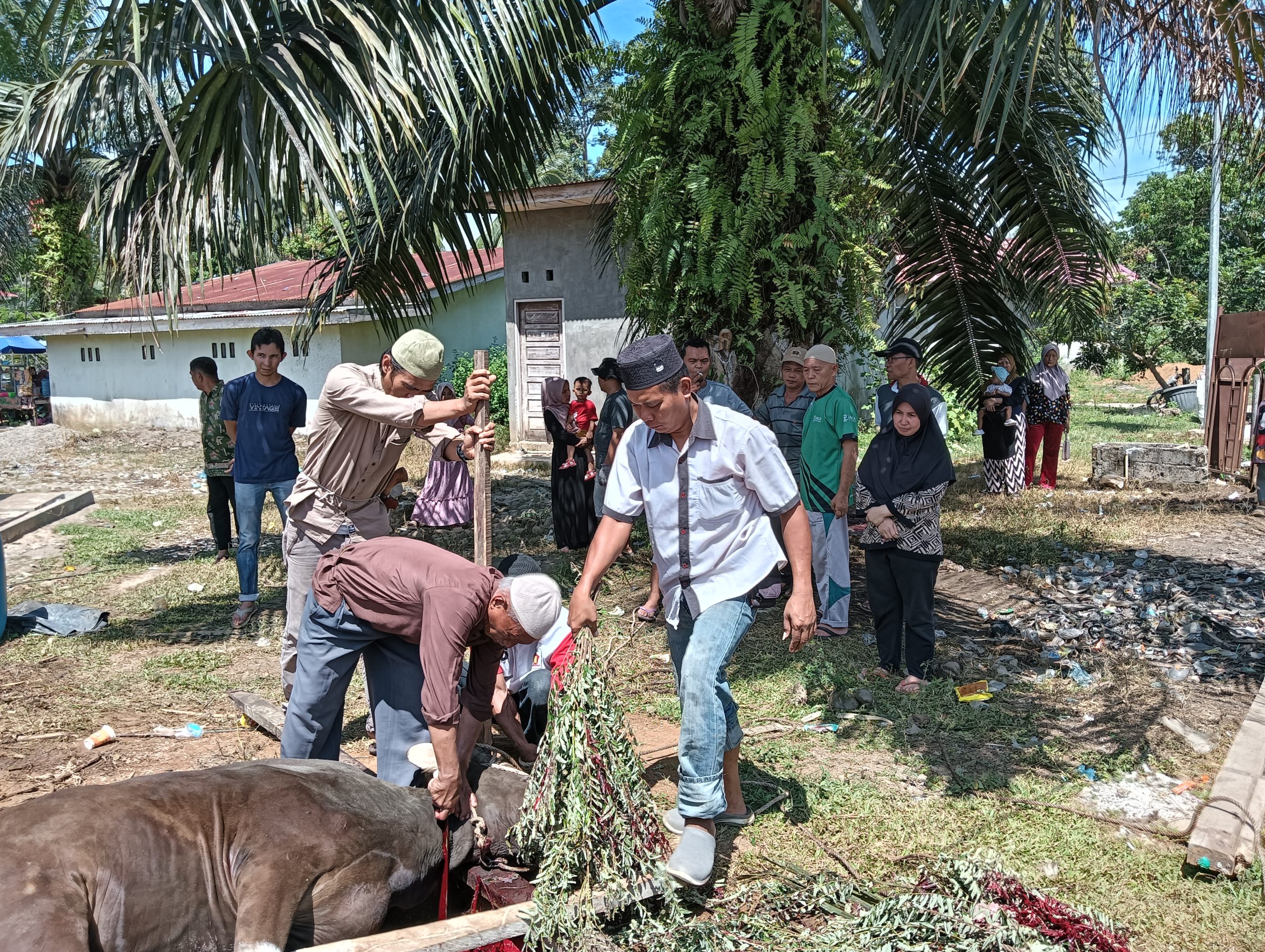 Dharmasraya,Shootlinecorp.com–untuk menyambut hari Raya Idul Adha 1446 H. Sebanyak 8 ekor Sapi dan 7 ekor Kambing dikurbankan oleh kerukunan warga jorong seberang mimpi, Nagari Gunung Medan, Kecamatan Sitiung, Kabupaten Dharmasraya.sabtu (07/06/25).