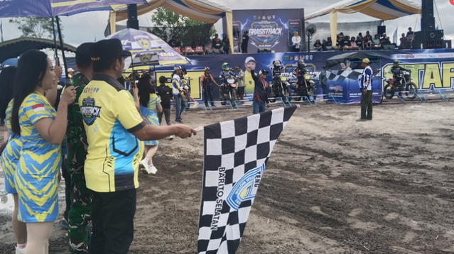 SHOOTLINE CORP /// BUNTOK – Wakil Bupati Barito Selatan, Khristianto Yudha buka secara resmi even Kejuaraan Provinsi (Kejurprov) Grasstrack Bupati Barito Selatan Cup 2025. Kejurprov ini berlaga di Sirkuit Tanto MX 179, Desa Sababilah, Kecamatan Dusun Selatan, Kabupaten Barito Selatan, Kalimantan Tengah, Sabtu (25/10/2025).