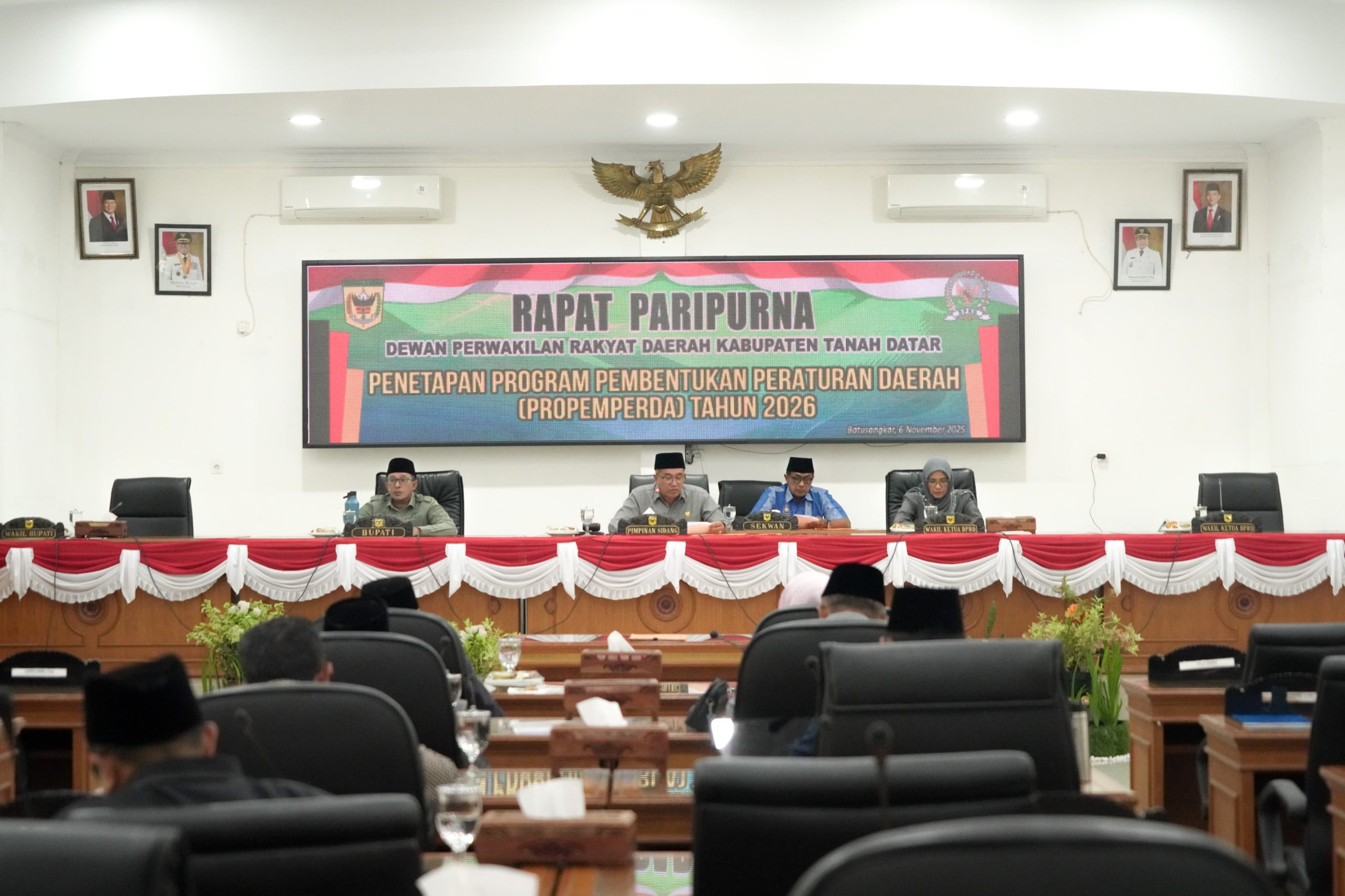 TANAH DATAR | Dewan Perwakilan Rakyat Daerah (DPRD) Kabupaten Tanah Datar menggelar Rapat Paripurna penyampaian Jawaban Bupati atas Pandangan Umum Fraksi DPRD terhadap Rancangan Peraturan Daerah (Ranperda) APBD Tahun 2026, Jumat (7/11/2025) di ruang sidang utama Gedung DPRD Tanah Datar.