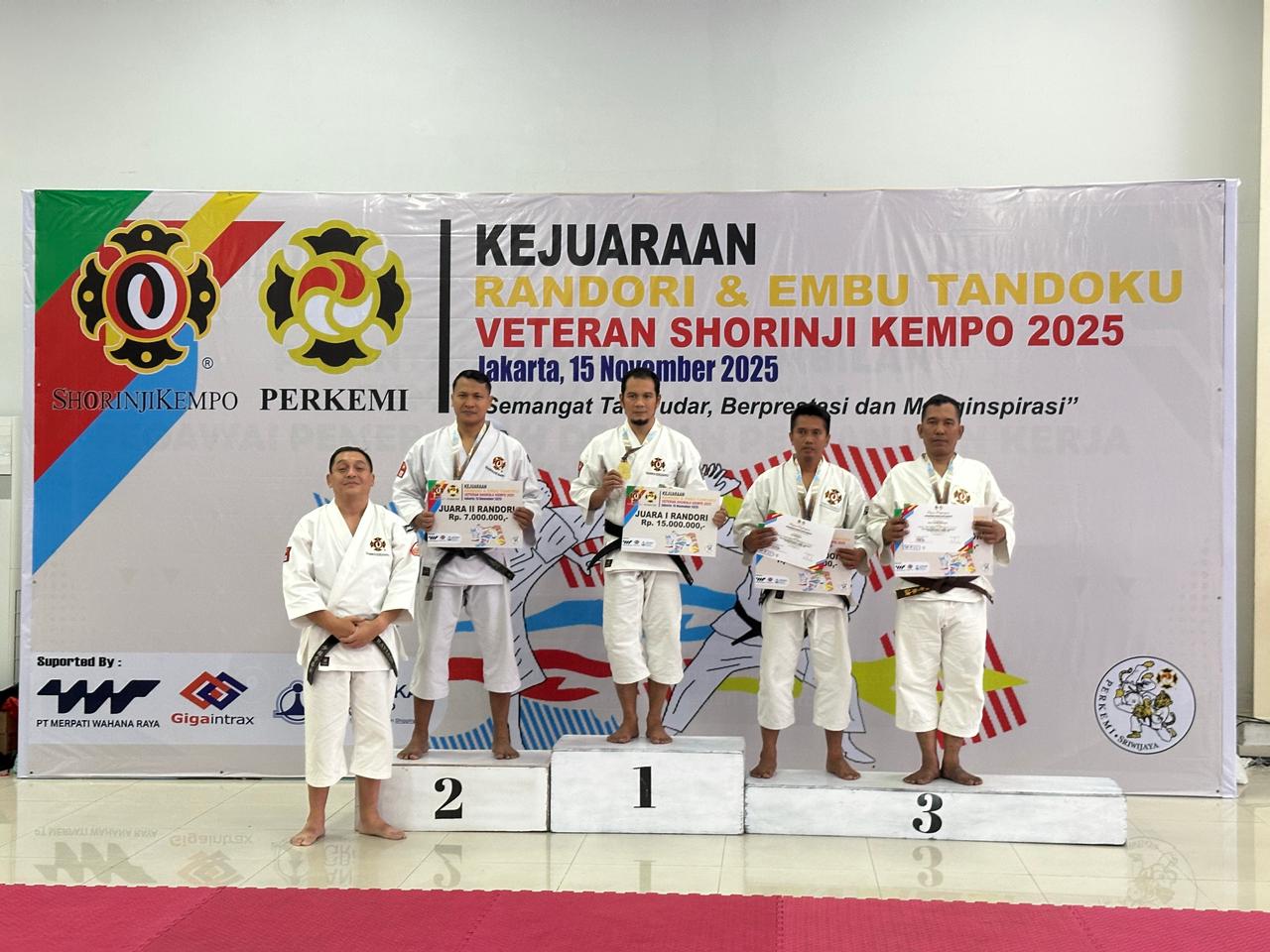 JAKARTA | Turun di kelas 60 – 70 kg kategori usia 40 – 50 tahun Personel Direktorat Intelkam Polda Sumbar Iptu Aljufri S.H berhasil menjadi yang terbaik di kejuaraan Randori dan Embu veteran Shorinji Kempo yang dilaksanakan di gor UNJ Jakarta tanggal 14 s/d 15 November 2025.