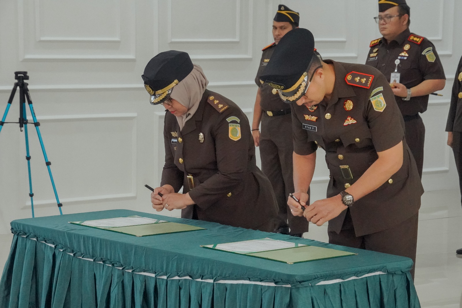 Pada kesempatan yang sama, Ryan Palasi, S.H., M.H. resmi dilantik sebagai Kepala Kejaksaan Negeri Tanah Datar. Ia menggantikan Anggiat AP Pardede, S.H., M.H., yang kini mengemban tugas baru sebagai Kepala Kejaksaan Negeri Pringsewu, Provinsi Lampung. Sebelumnya, Ryan Palasi menjabat sebagai Koordinator pada Kejaksaan Tinggi Jambi, posisi yang membentuk pengalamannya dalam koordinasi lintas bidang dan supervisi teknis penanganan perkara.